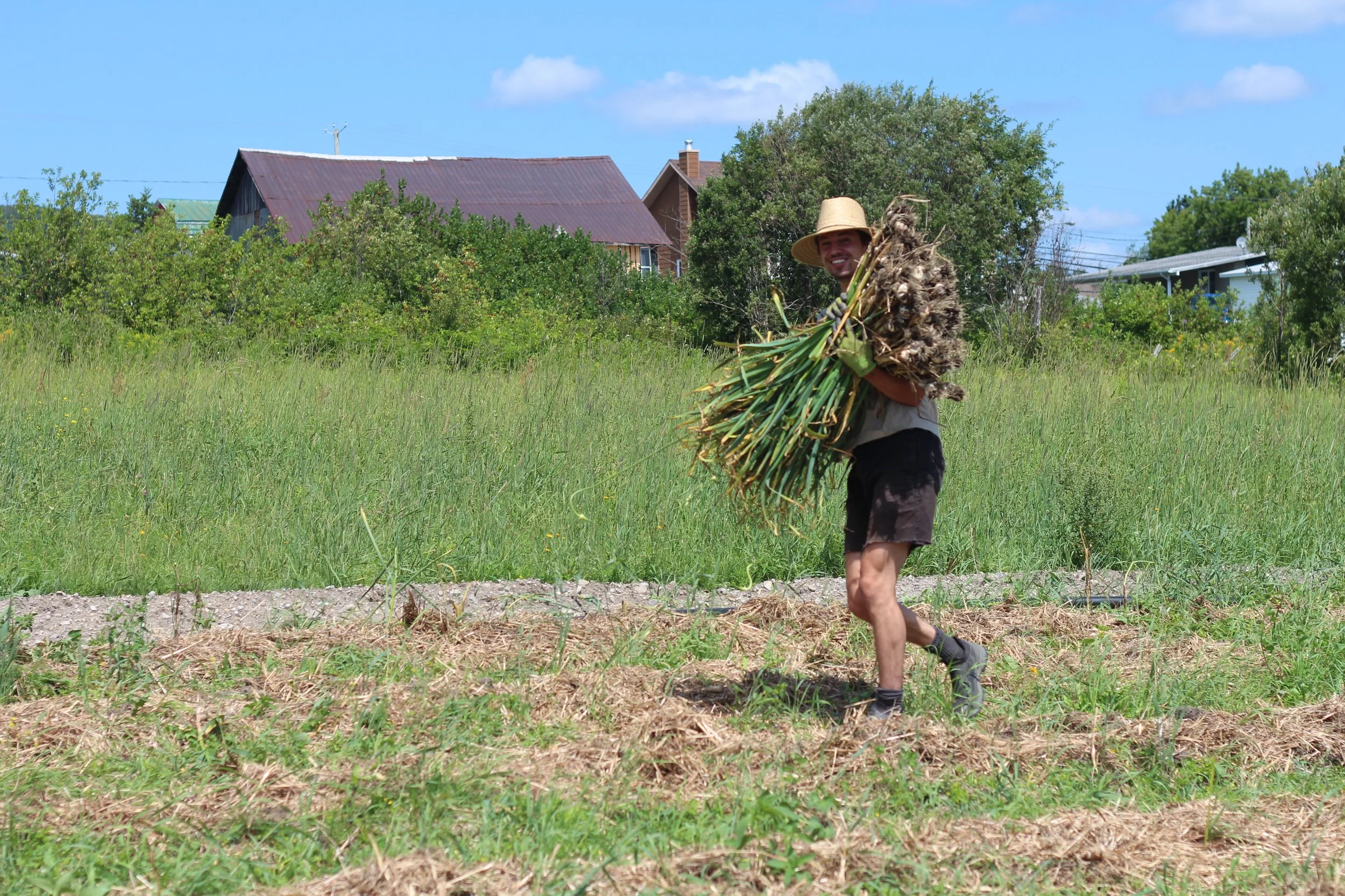 Bonjour ! Je suis la fondatrice de La ferme aux coureurs des champs. Je participe à tous les aspects de la ferme en passant par la planification des cultures et le démarrage des semis, juste qu’à l’implantations des cultures et la mise en marché. C’est avec bonheur et passion que j’exerce ce métier en phase avec mes valeurs, en contacte avec la terre, ma famille et mes clients. Je ne viens pas d’une famille d’agriculteurs, mais les valeurs de ma famille m’a certainement mis sur ce chemin, ma mère étant horticultrice en aménagement comestible et mes deux parents étant entrepreneurs. Suite au secondaire, j’ai voyagé du Labrador au Guatemala et travaillé sur quelques petites fermes bio, puis l’été je plantais des arbres. C’est en 2017 je mon conjoint et moi avons acheté la terre à Robertsonville.